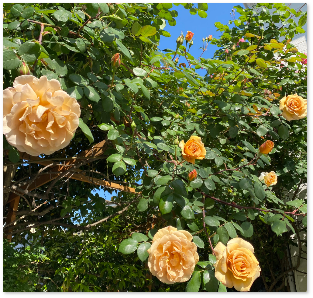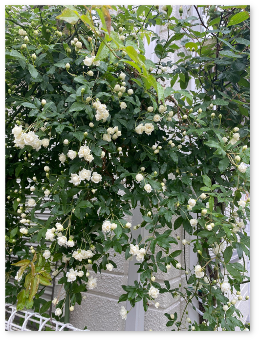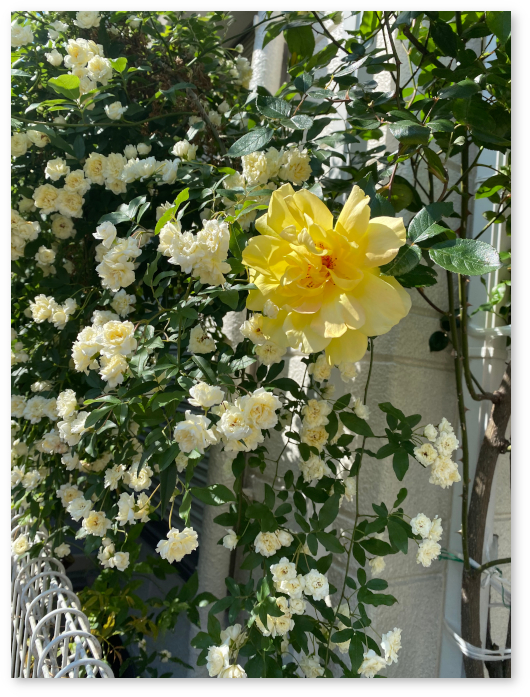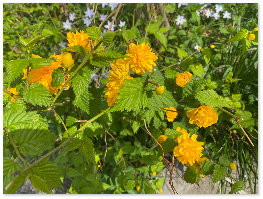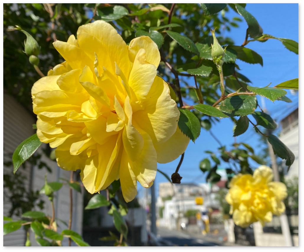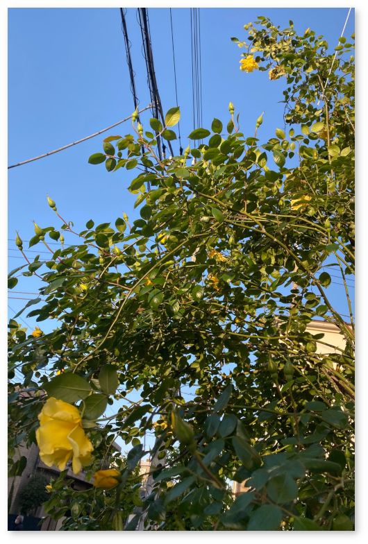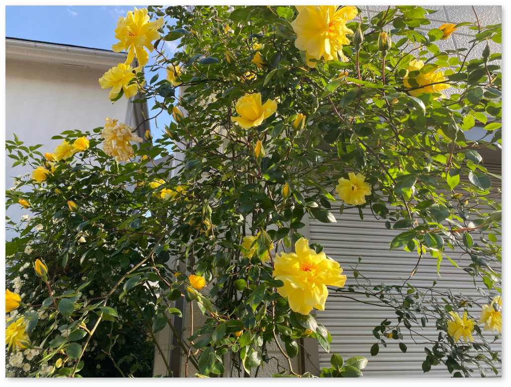 近所のモッコウバラより数日遅れて、ウチのモッコウバラもどんどん咲き始めた。