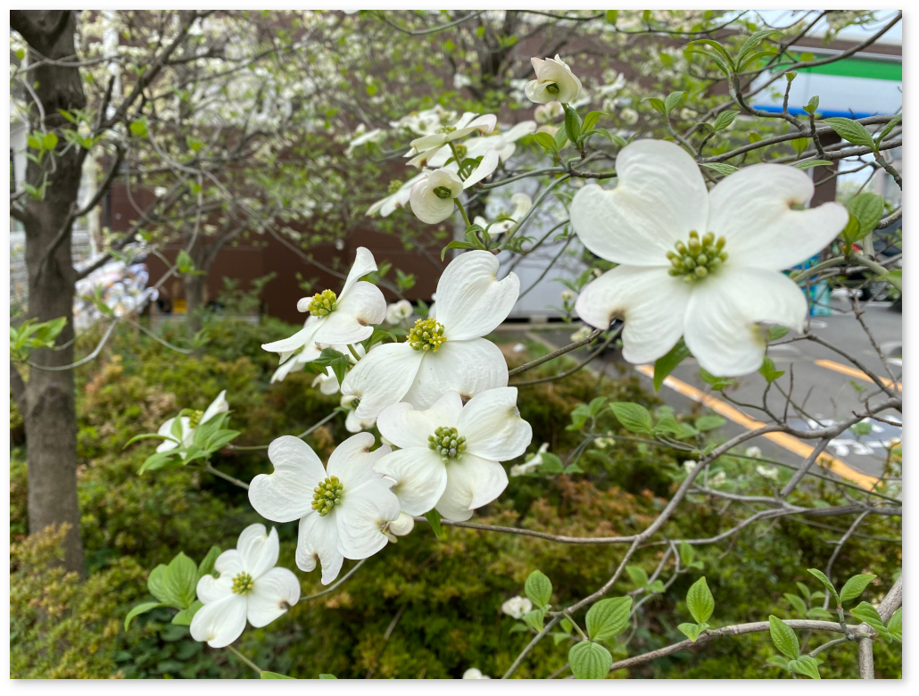 ハナミズキや常緑ヤマボウシなどは、葉がそれほど茂らないので建物が密集した都市で日光が貴重な場所には向いているのかもしれない。