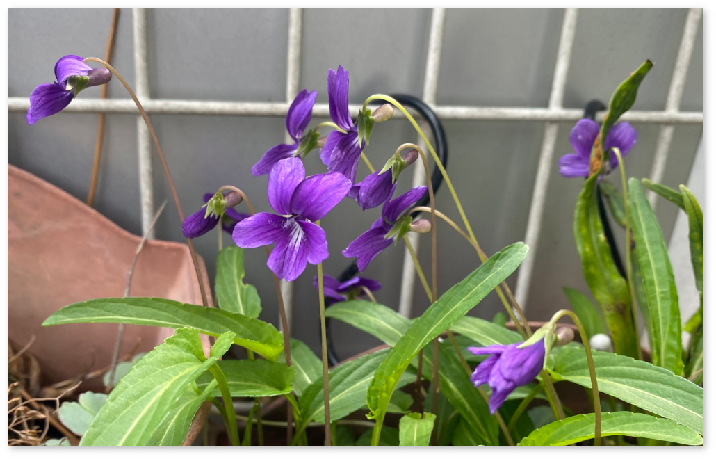 野草的な花をつけるスミレは、いつのまにか生えて咲いている。
