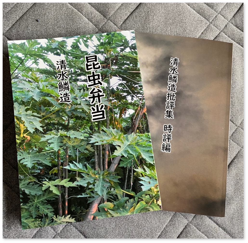 先日『昆虫弁当』と『批評集 時評編』の表紙をグロス加工したものにして増刷して、しばらく食卓に置いておいても劣化しない。