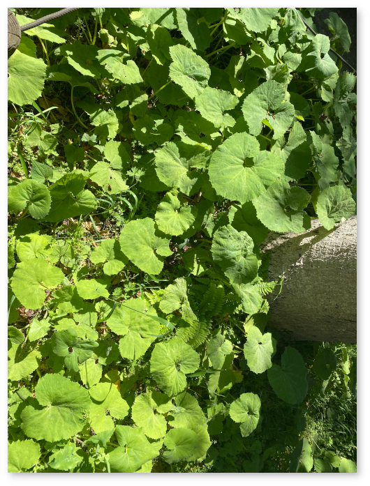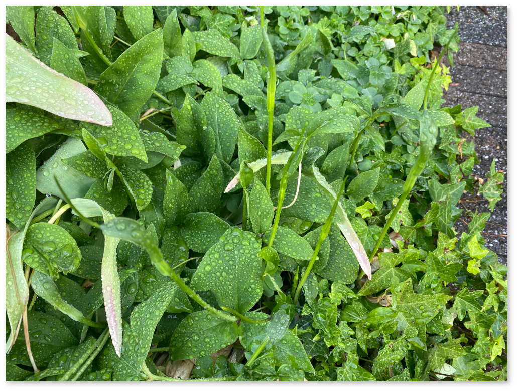 ほかの植物に紛れて少し見えにくいが、カラスビシャクが生えているとなんとなく空気がいいところの雰囲気が出る。