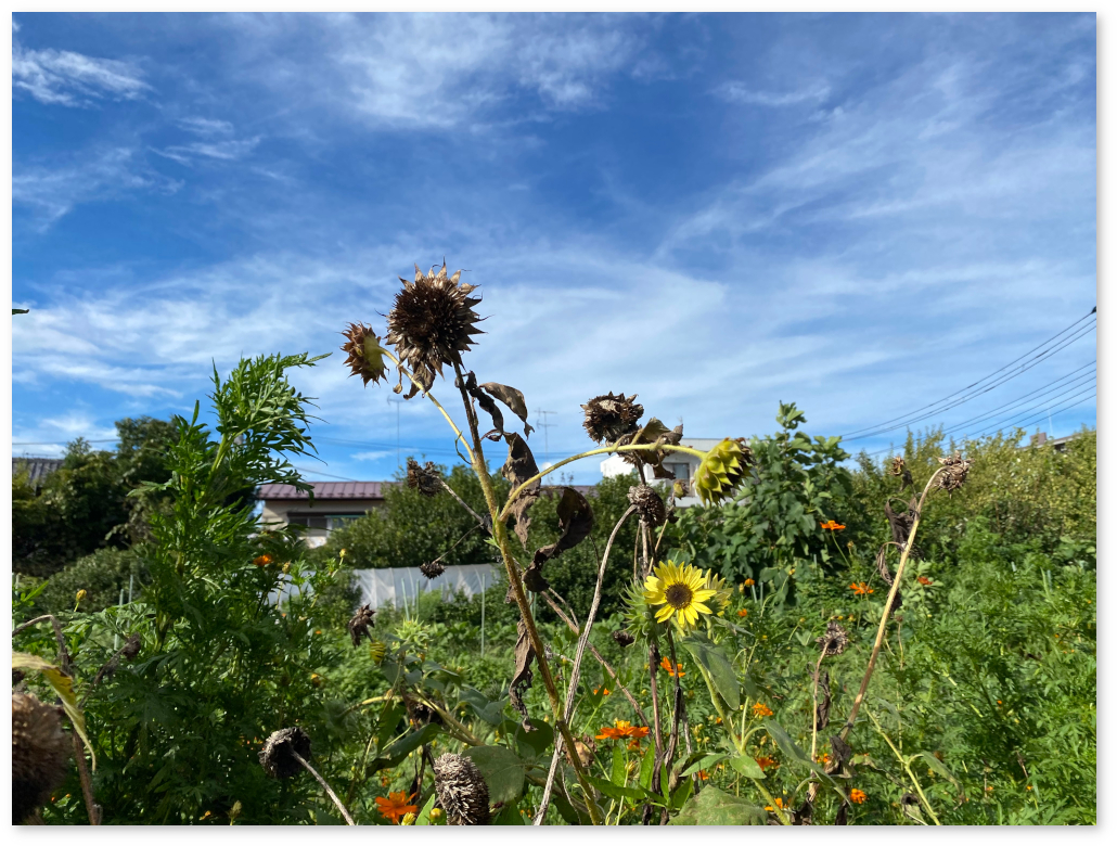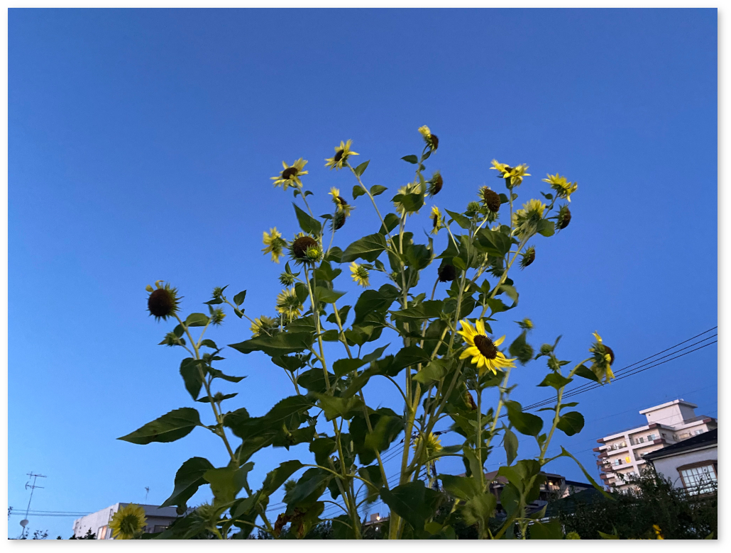 夕方、近所の畑を通り、ヒマワリの写真を撮った。