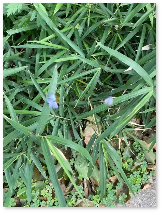 いままで比較的近くで撮った写真があるので、これは笹の上を2匹飛んでいて、シジミチョウの色が移動していくところというところがわかるだけのもの。