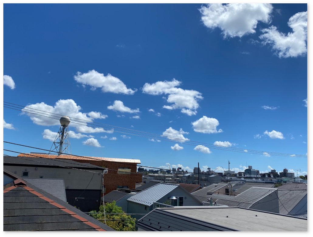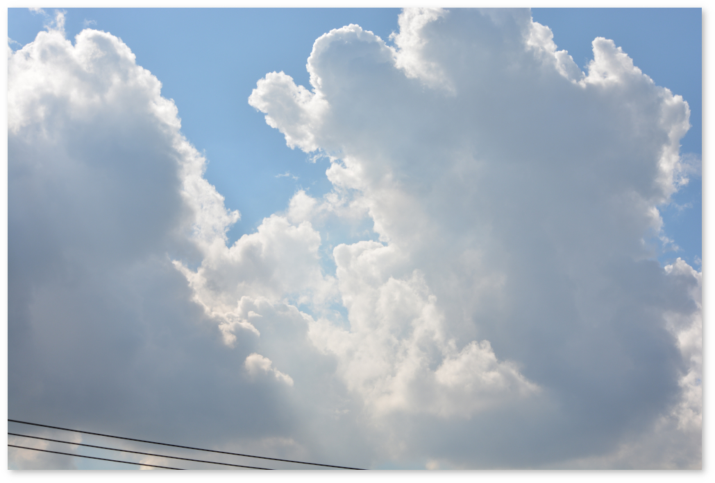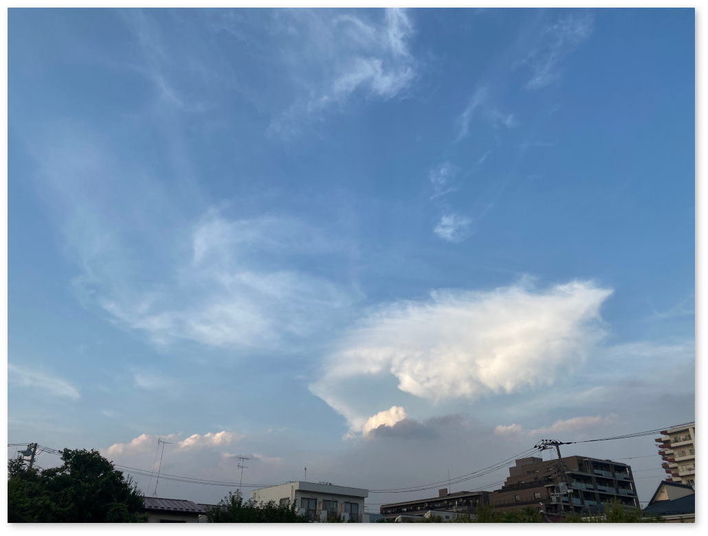 にわか雨が多いここ数日の荒れた天気の後なので、雲がきれいに浮かんでいる。