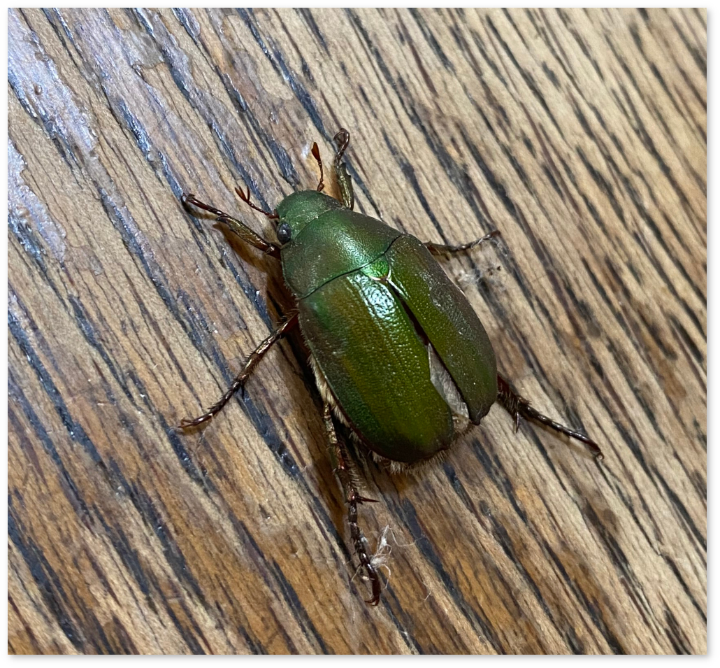 このハナムグリは小さめだが、真夏に数回は観察できる昆虫。