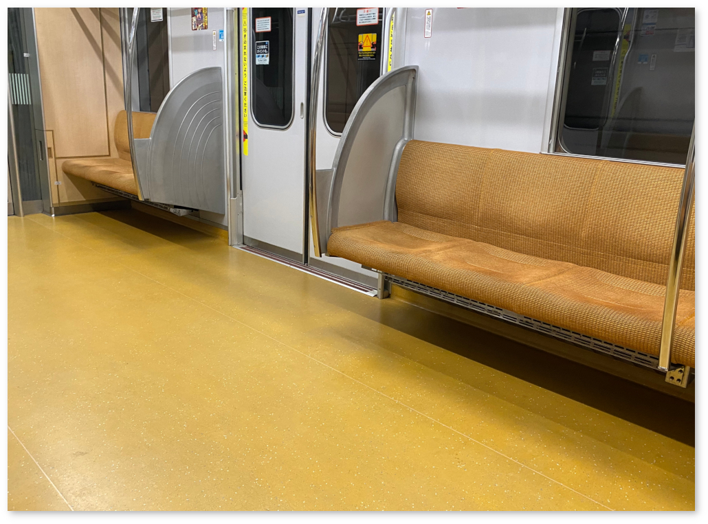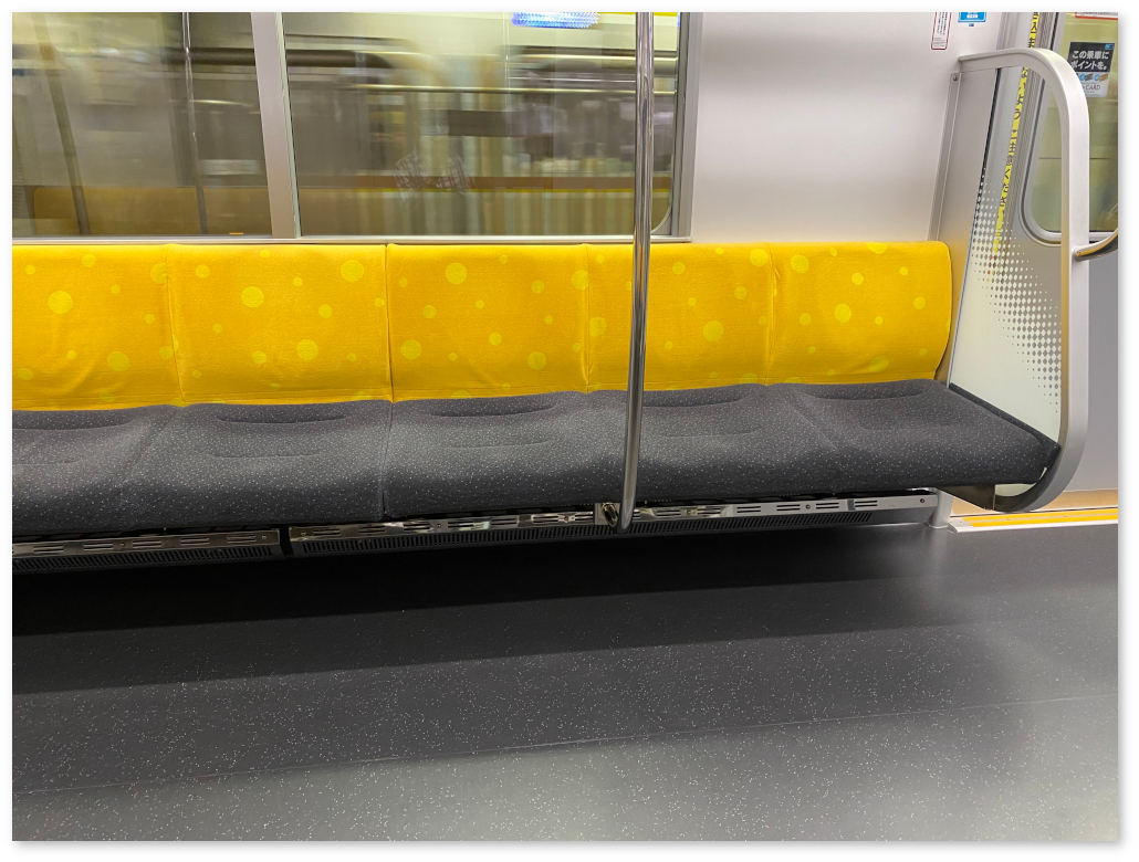 地下鉄電車の車両、座席が続々とリニューアルされていて、今日も新しい座席の写真を撮った。