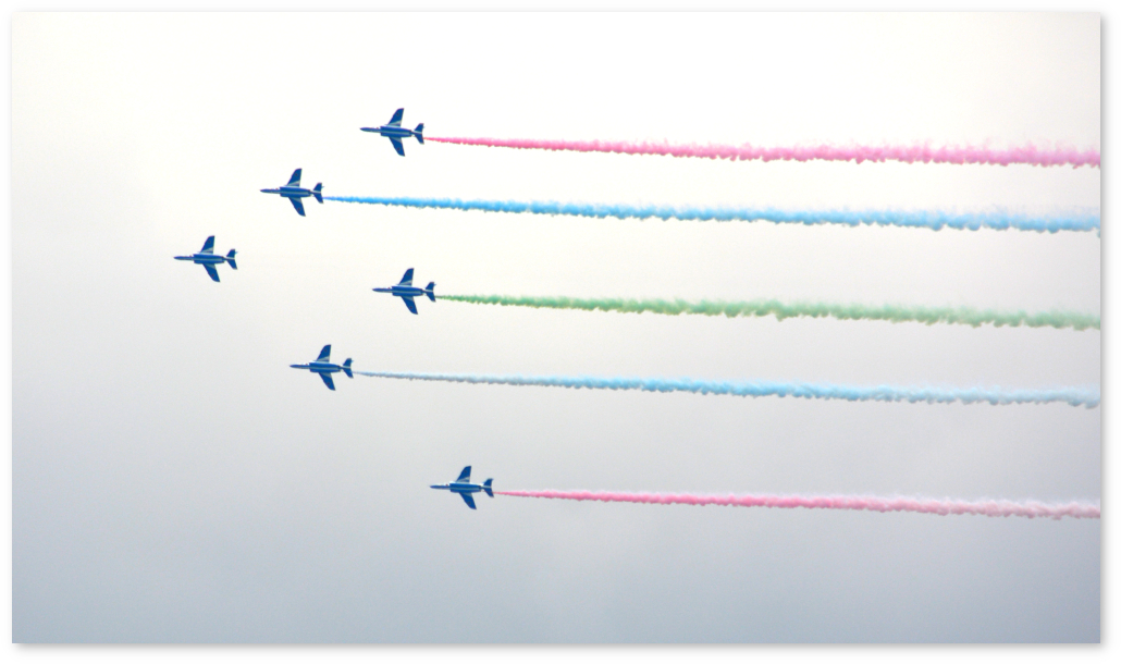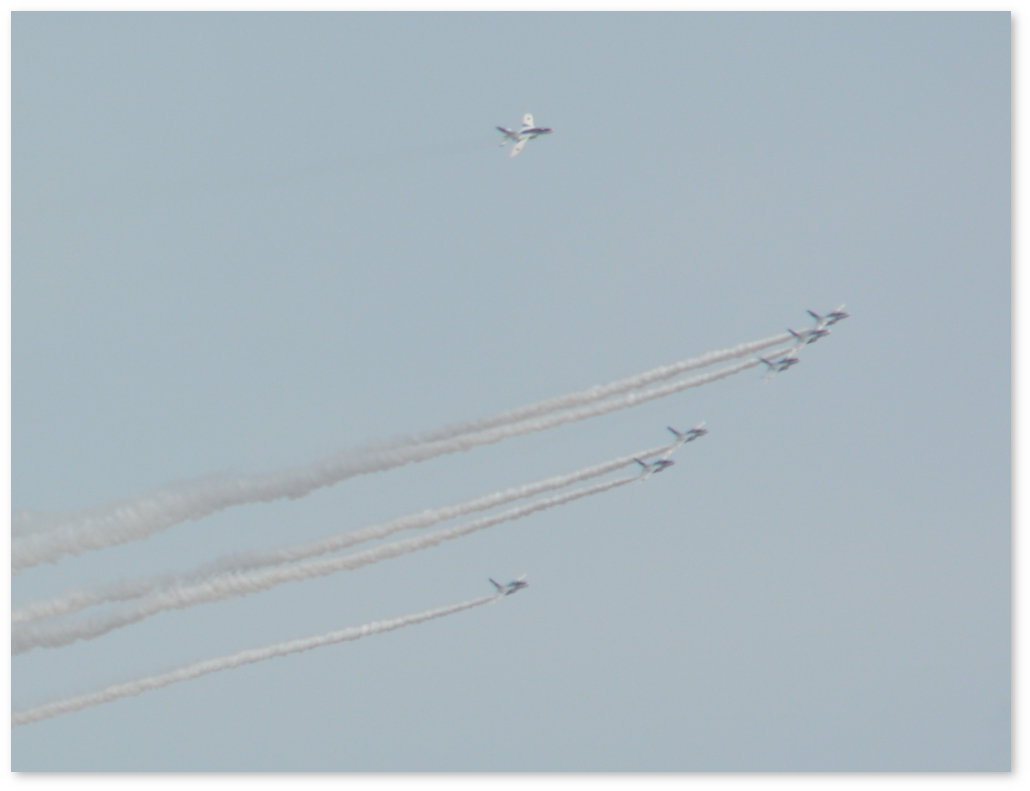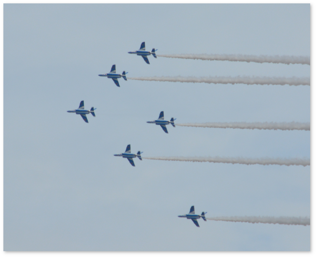 ベランダからブルーインパルスの飛行がよく見えるとのことで、望遠レンズを着けたカメラで撮った。