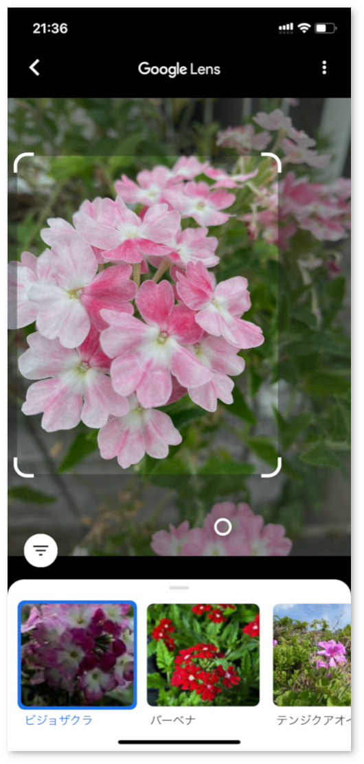 下のバーベナの花を、Google Lensで読み込むと候補のなかから名前がわかった。