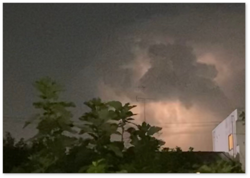 先ほど遠雷が見えた。スマホで撮り、光っている空を切り取ってみた。