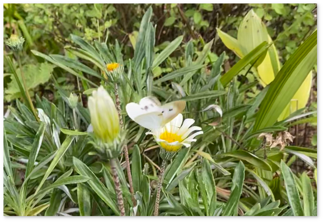 昨日撮ったモンシロチョウの飛翔の写真のなかに、なにかしゃれた感じで花にとまっているものがあった。