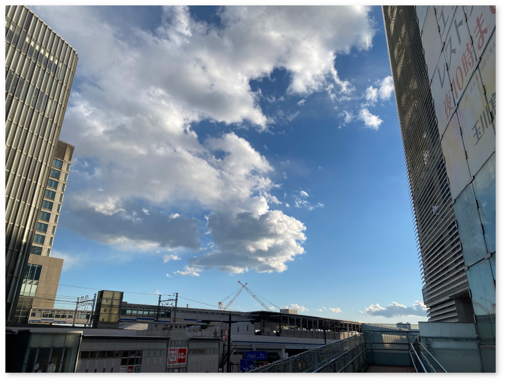 これは月曜日に行った二子玉川の高島屋3階から西の駅方向を撮った写真。