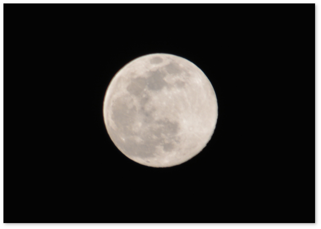 見上げる月はこのぐらい明るいので、雰囲気としてはこのほうがディテールがあまり見えすぎるよりいいのかもしれない。