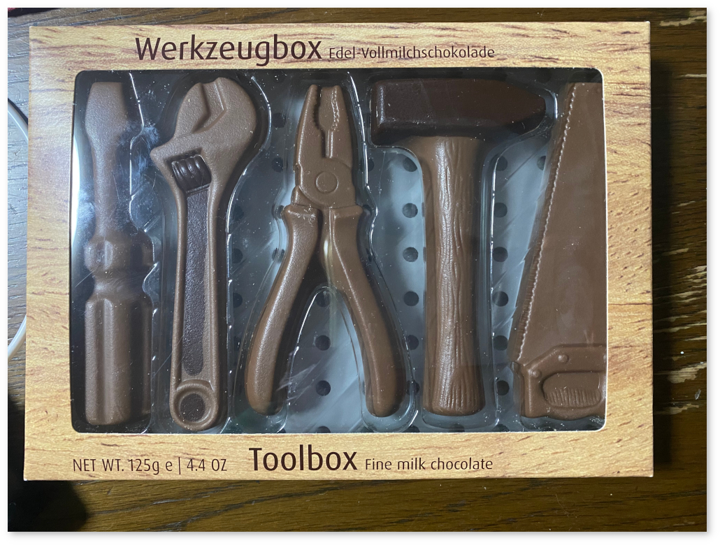 朝食に食べる「チョコ挟み」にはバターなどは使わずに「糖質制限チョコ」を息子たちからもらったので挟んでいる。