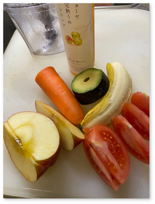ただバナナやりんごなどの甘さが足りないと感じて、ほかに砂糖などの糖分を取らないなら、梅シロップを入れるのもアリかなと思った。