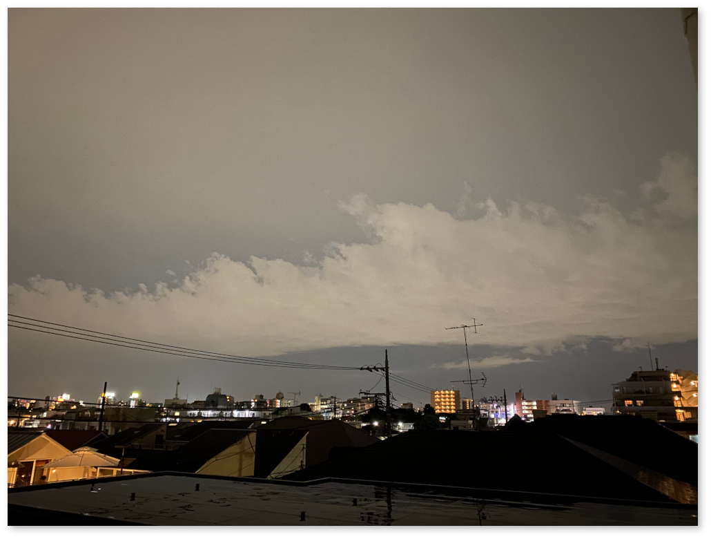 iPhoneで夜景を撮ると雲の形もよくわかる。