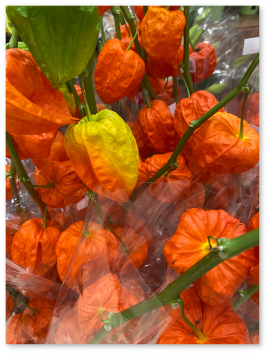 In the flower section of a supermarket I happened to enter, I saw ground cherries being sold.