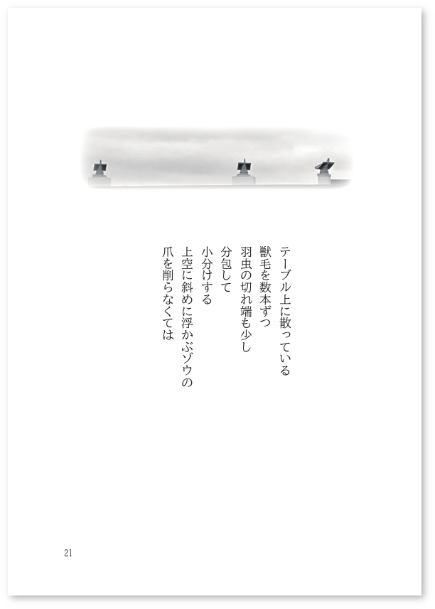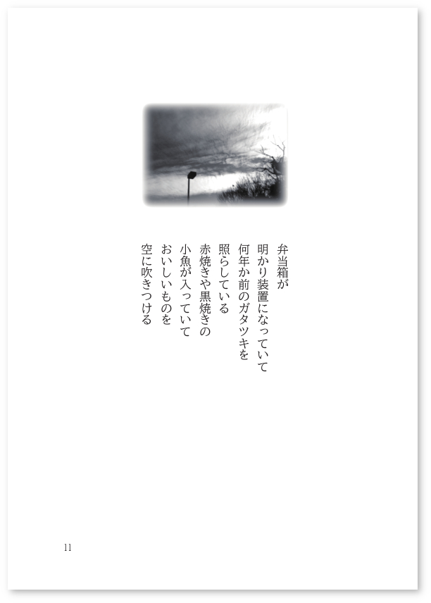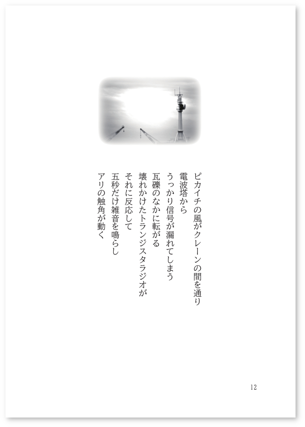 5ページぐらい、写真と詩の組み合わせのセクションを出してみる。