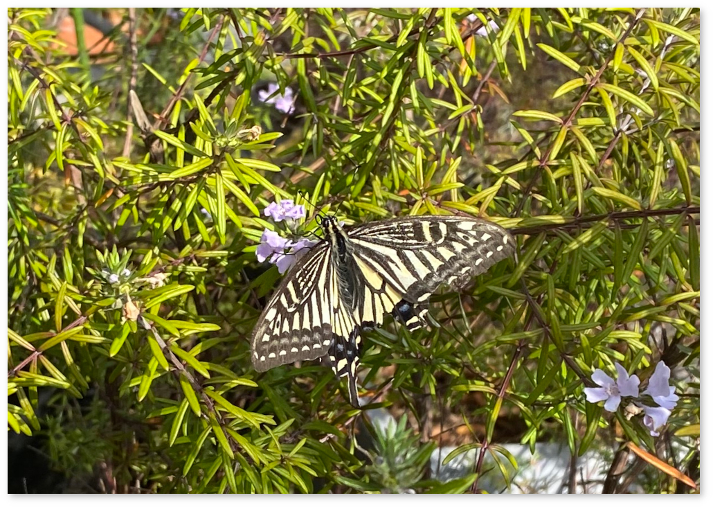 ローズマリーにとまるアゲハチョウ
