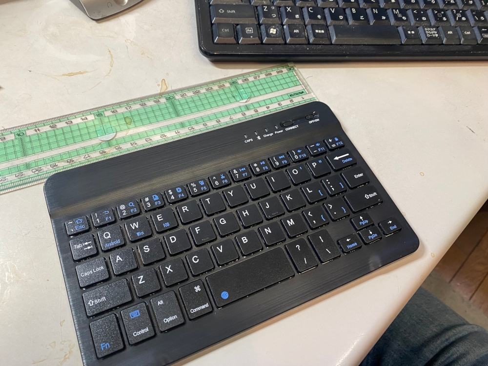 androidのタブレットがあるので、予備で使えるようにしておいたほうがいいような感じもする。そこでbluetoothで使えるミニキーボードを1600円で通販で買った。