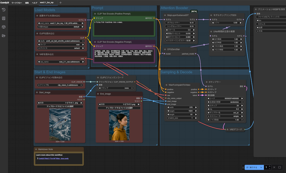 ComfyUIではwan2.1_fun inpというワークフローに慣れてきた。