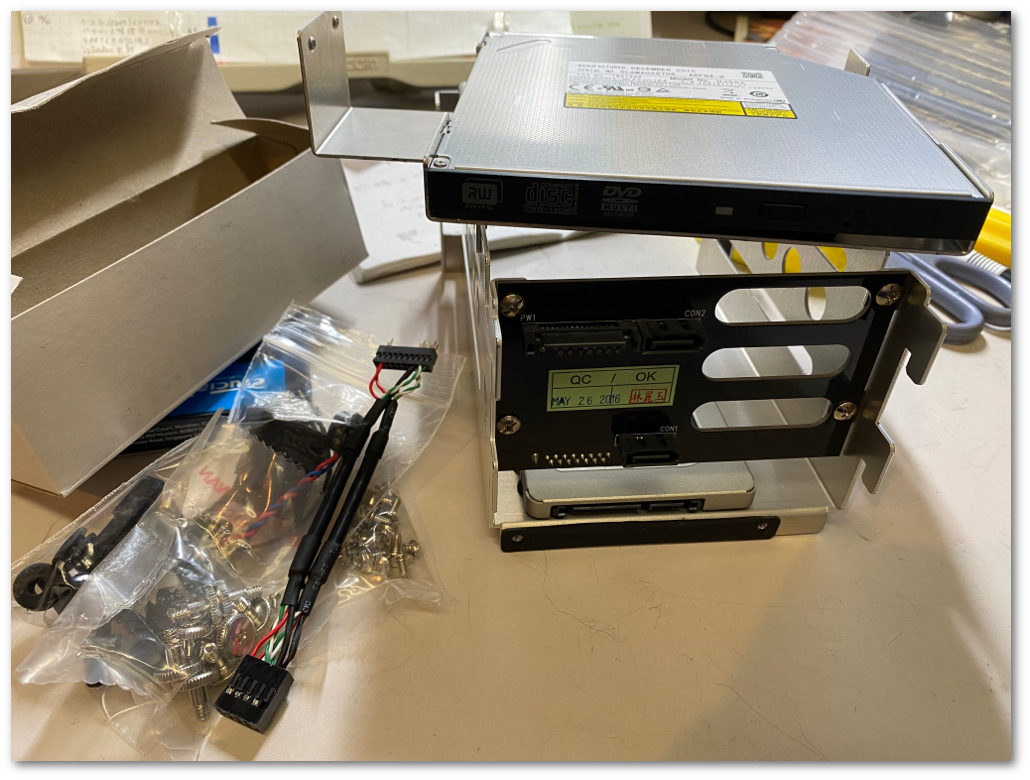 今日はスリムDVDドライブのアルミ枠への装着、SDDの装着を行った。