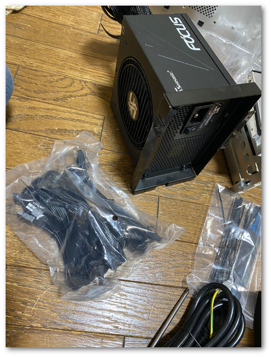 パソコン作りは、電源ユニットの装着場所の確認と、枠へのネジ止めをした。