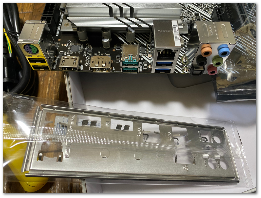 それぞれのマザーボードのジャックの配置はそれぞれ違うので、バックボードが付いている。