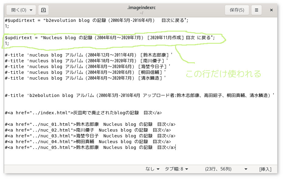 補助的にホームディレクトリに「.imageindexrc」というファイルを作り、たとえば下記は上位ディレクトリの「index.html」のリンクをコマンドラインで指定している。