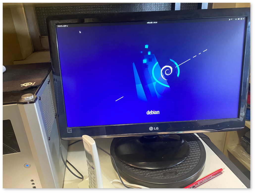 ただ「nvidia driver」をインストールする必要があるので、使うマザーボードだと、「Ctrl+Alt+F2」でターミナルを起動して、/etc/apt/sources.listをviで少し書き換えて、インストールした。このあたりのことは、nucleus blogで「nvidia」で検索すると過去にやったことが出てくる。